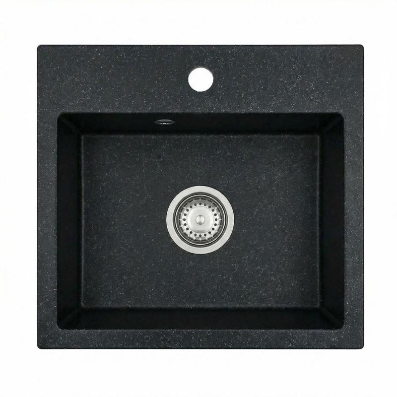 Graniteland Nera Fregadero de Granito 45x42 cm Aspecto de piedra dura de Arduin Montaje con orificio para grifo y tapón de acero inoxidable 1208971432