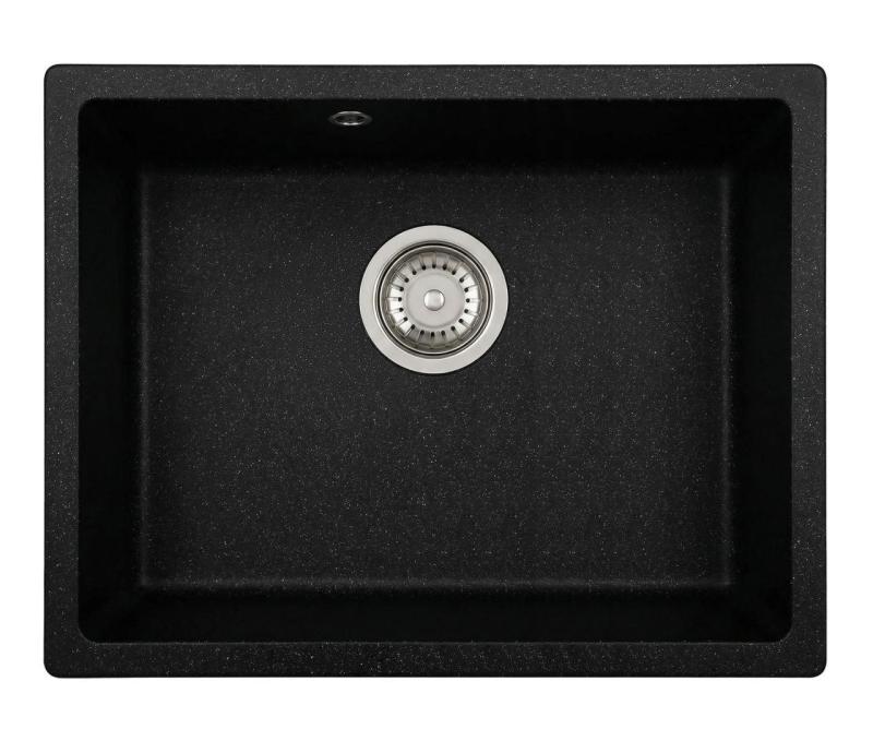 Graniteland Solo Fregadero de granito negro piedra azul belga 42x34 cm con tapón de acero inoxidable 1208970606