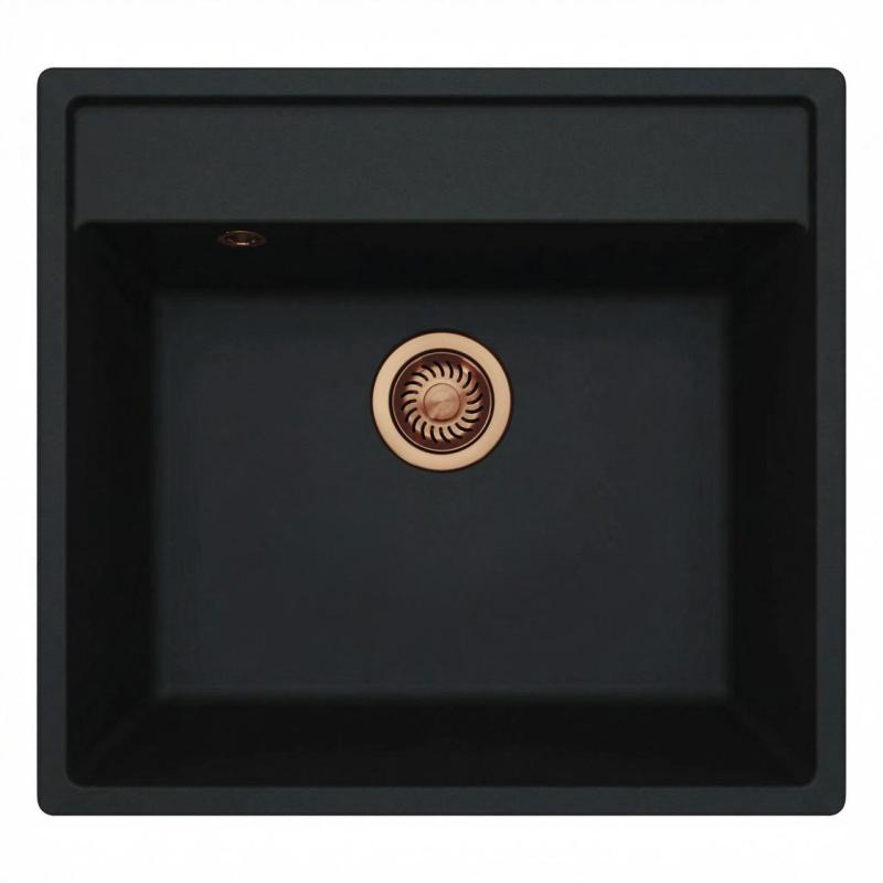 GraniteMy Bremen Fregadero de Granito 53x50 cm Negro - Montaje Superior, Inferior y al Ras con Orificio para Grifo y Tapón de Cobre 1208969970