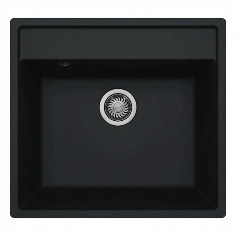GraniteMy Bremen fregadero de granito 53x50 cm negro empotrado, montado sobre encimera y a ras con área para grifo CON TAPA DE ACERO INOXIDABLE Empotrado, montado sobre encimera o a ras para instalar
