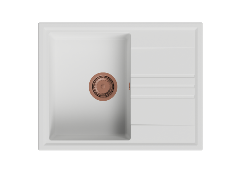 GraniteMy Vesi fregadero superior de granito blanco 64x50cm con escurridor reversible con tapón de cobre 1208967301