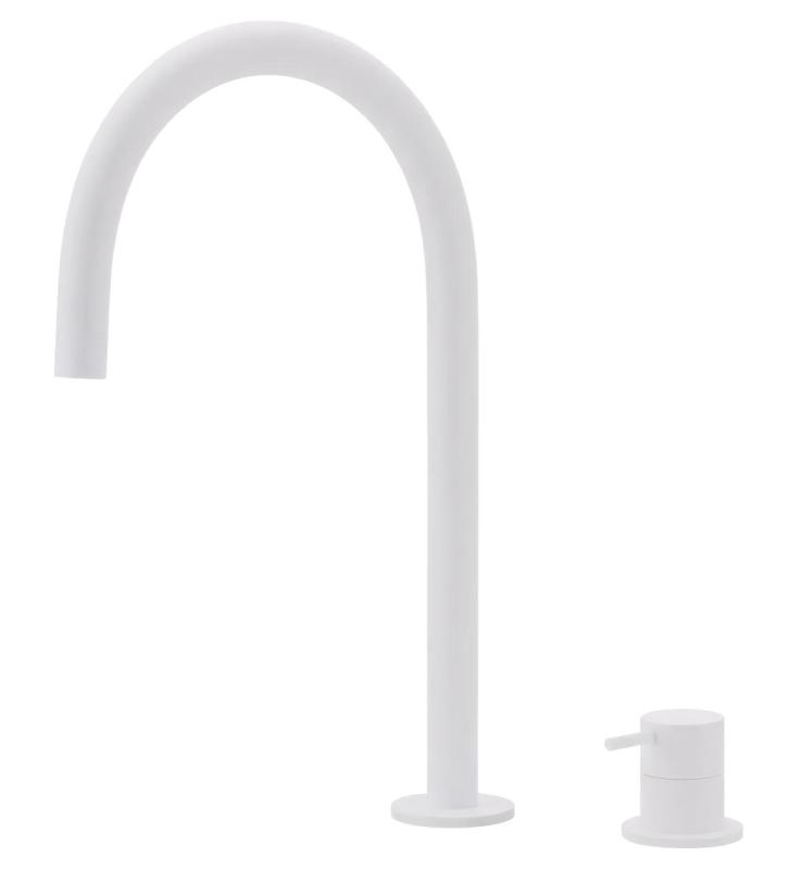 Grifo de lavabo Waterrevolution Flow de 2 orificios, blanco, con caño alto de 200 mm T1122UBR