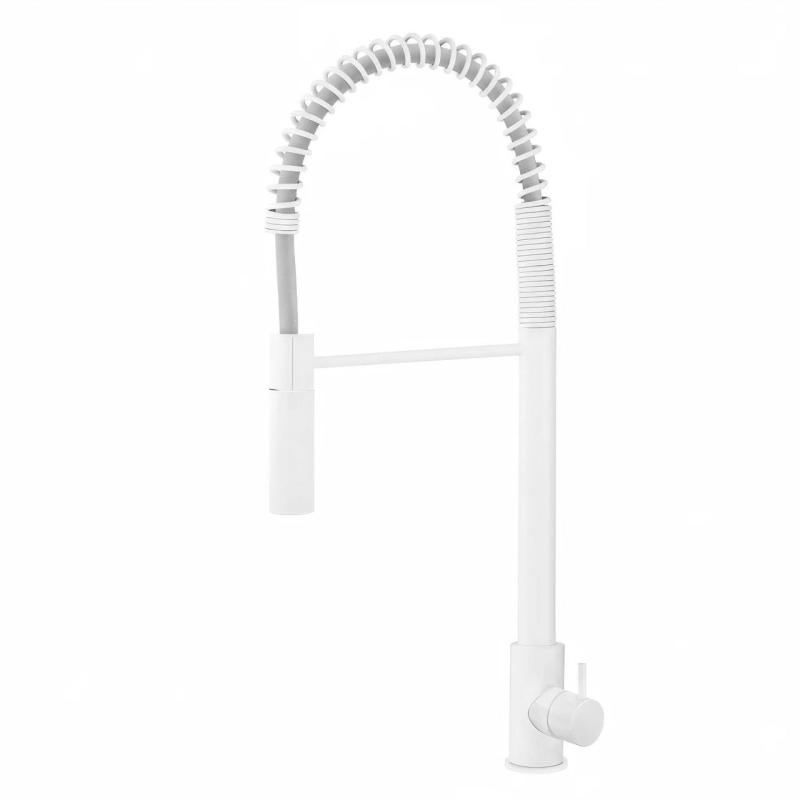 Grifo monomando de cocina semiprofesional Waterevolution Flow blanco mate con columna y muelle T157BR