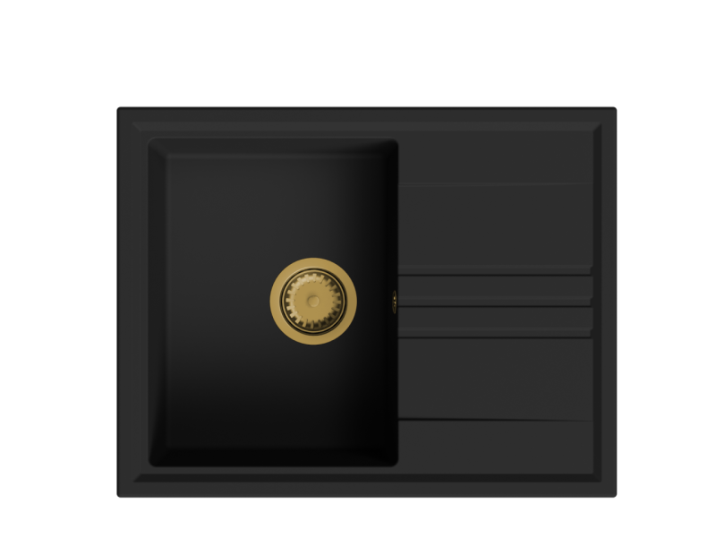 GraniteMy Vesi pileta de granito montada en superficie negra 64x50cm con escurridor reversible con tapón dorado 1208967296