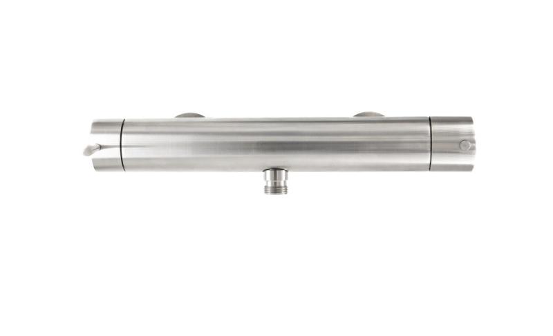 El grifo está fabricado en latón macizo y cuenta con un revestimiento cromado duradero. Esto le confiere un brillo lujoso, una excelente resistencia a la corrosión y una fiabilidad duradera. Gracias al mecanismo termostático, la temperatura ajustada se mantiene estable, incluso con cambios en la presión del agua.