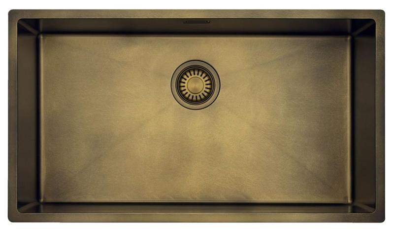 Pure.Sink Luxion Gran fregadero PVD Antique Bronze de 74 x 40 cm para encastrar, empotrar o montar sobre encimera con rejilla inferior PLX7440-64